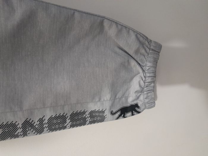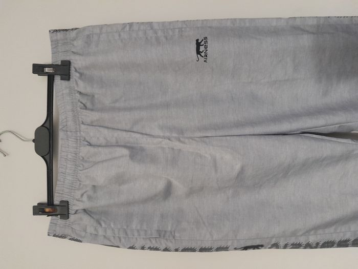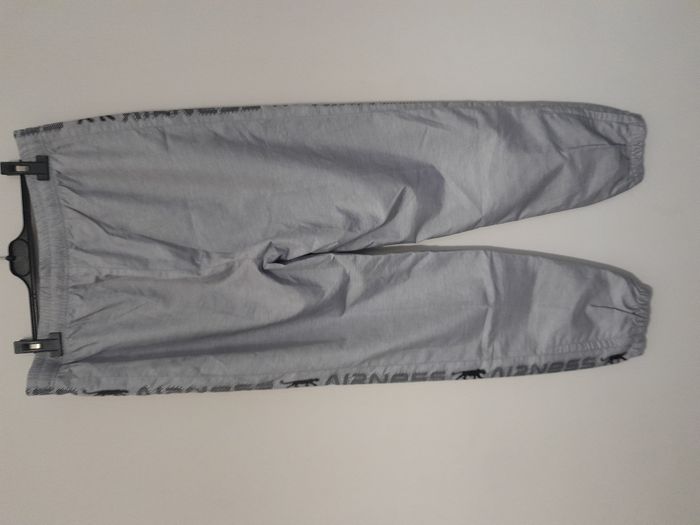 Jogging, 2 poche, élastique sur le bas des jambe avec fermeture éclair, logo inscrit sur les côtés, élastique à la taille + cordon Longueur : 108cm Taille en cm : 43 Matière : 100 % Polyester Marque : Airness