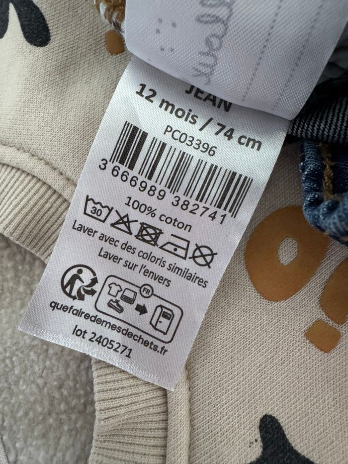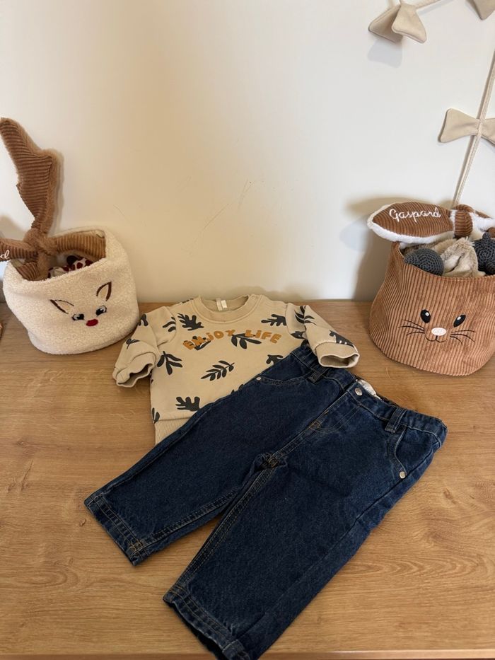 [ OFFRE BÉBÉ 🧸 : 15€ au lieu de 20€ ] Ensemble 2 pièces Taille : 12 mois (74cm) • PULL SWEAT Marque : Orchestra Couleur : beige Motif : feuille noir + inscription « ENJOY LIFE » État : TRÈS BON ÉTAT - porté 2 fois mais toute petite taches (voir photo) • JEANS Marque : Petits Cailloux Couleur : bleu brut État : NEUF - jamais porté (voir étiquettes intérieur qui sont intacts) Je vends le lot complet : 20€ #lotbébé #ensemble #bodie #jogging #ensemble9mois #bodie9moisgarcon #bébé #bebegarcon #bebemixte #9mois #bebe9mois #bebe9moisgarcon #9moismixte #lotbebemixte #lotbebe9mois #lotbebe9moismixte #hm9mois #kiabi9mois #orchestra9mois #gemo9mois #ca9mois #verbaudet9mois #9mois #ensemble12mois #bodie12moisgarcon #bébé #bebegarcon #bebemixte #12mois #bebe12mois #bebe12moisgarcon #12moismixte #lotbebemixte #lotbebe12mois #lotbebe12moismixte #hm12mois #kiabi12mois #orchestra12mois #gemo12mois #ca12mois #verbaudet12mois #12mois