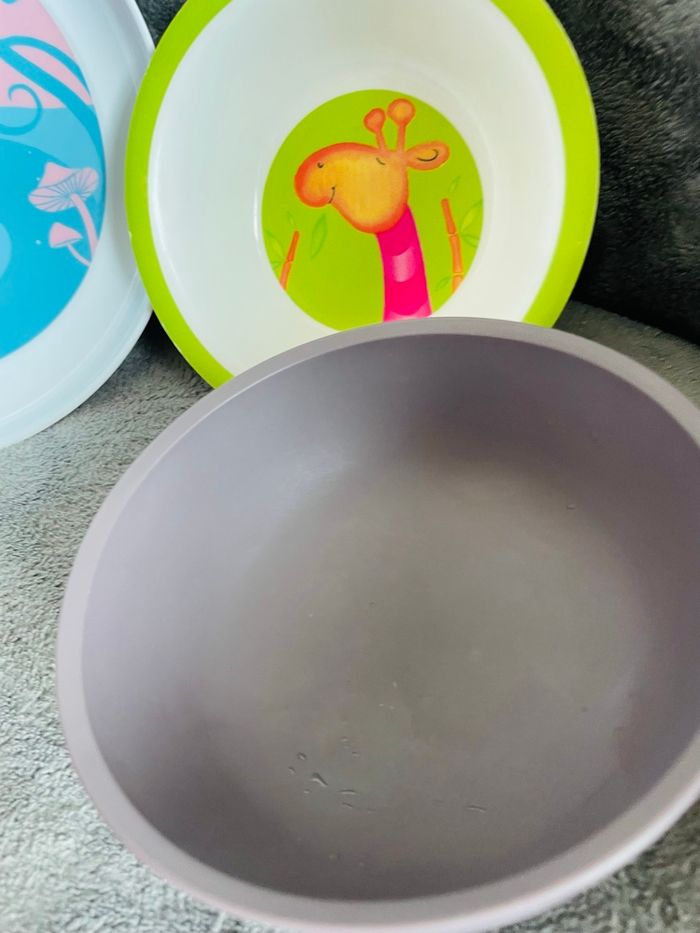 Lot vaisselle pour bébé comprenant : * une assiette, un bol et un verre en silicone de la marque Nattou (seul le verre comporte quelques traces : photos à l’appui ) * une assiette plate princesse et une assiette haute girafe : toutes les 2 en 100% melamine Envoi soigné #stefetjuju51puericulture maison non fumeurs bien d’autres choses dans mon dressing de nouveaux articles très régulièrement nombreux # dans mon profil pour faciliter vos recherches merci pour votre visite et belle journée ☺️ #lot #vaisselle #bebe #fille #verre #assiette #nattou #silicone #melamine