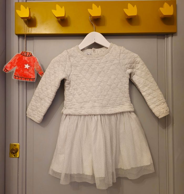 Robe Petit Bateau 4 ans Épaisse, chaude pour l'hiver Gris et argenté Coutures motif losanges Jupe en voile aux paillettes, doublée