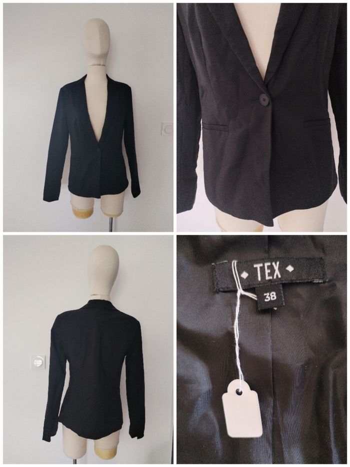 ⚠️PRIX NÉGOCIABLE 🥳😍🥰 Bonjour 👋 Je vends cette veste costard noir vintage TEX à manches longues femme taille M/38 NEUF. 👕-Type de produit: veste de costard 🏷-Marque: Tex 📏-Taille: M/38 🎨-Couleurs: noir Les mensurations De l'épaule de gauche  à la droite: 36 cm De l'aisselle gauche à  droite: 44 cm Longueur du haut en bas: 59.50 cm Longueur des manches: 62 cm Article de très bonne qualité. Vêtements stoker à l'abri de l'humidité. Pour ceux et celles qui font des allergies au poil d'animaux ou à la fumée de cigarette, j'informe que je n'ai pas d'animaux et je que ma maison et non fumeurs.  N'hésitez pas à regarder mon compte vendeur, pour trouver des pépites ! J'accepte tout les monde de livraisons que propose beebs 💳 Paiement: J’accepte le paiement que propose la plateforme beebs. 🖊📮📬Très réactive aux messages. 📦 Envoie soigné et rapide. Bon shopping sur beebs 🛍🛒