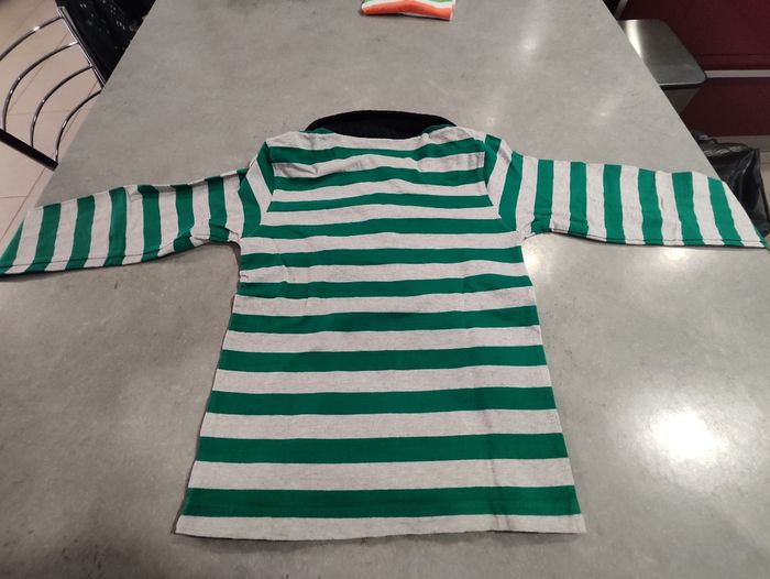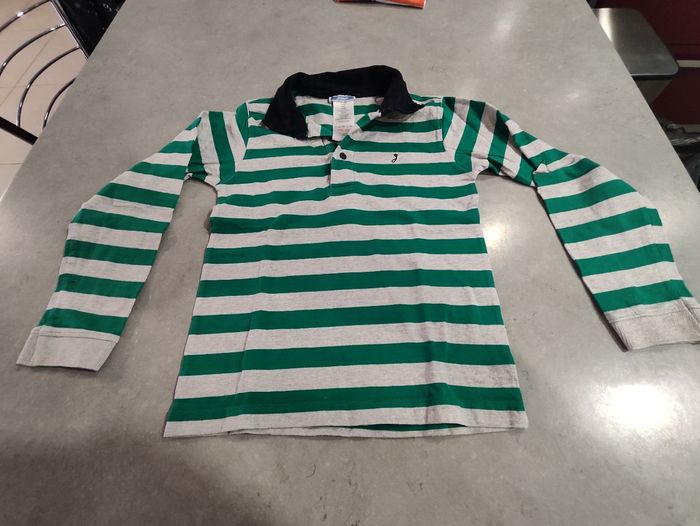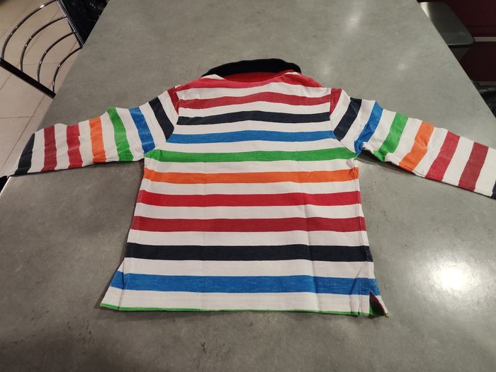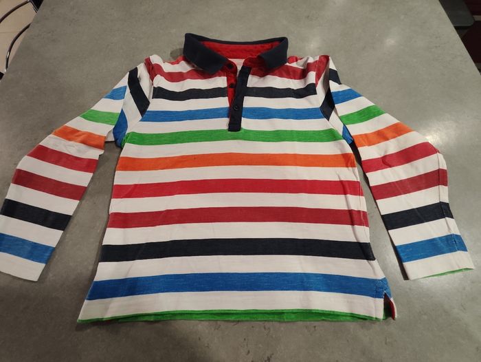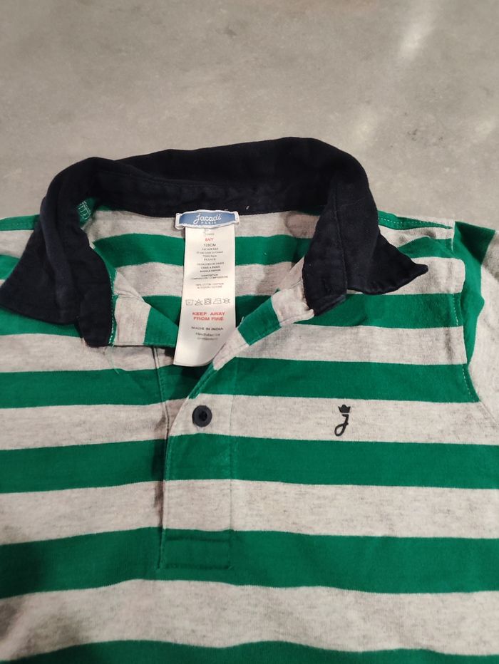 Vends lot de 3 polos manches longues pour garçon, taille 8 ans (128 cm), en bon état général : - Polo INEXTENSO : gris et bleu marine à rayures, col blanc - Polo JACADI : vert et gris rayé, col noir - Polo ORCHESTRA : rayures multicolores (rouge, bleu, vert, orange…), col bleu marine avec intérieur rouge. À noter : deux légères traces de stylo sur l’avant (voir photos). D'autres d'autres vêtements de la même taille sont également disponibles sur mon profil