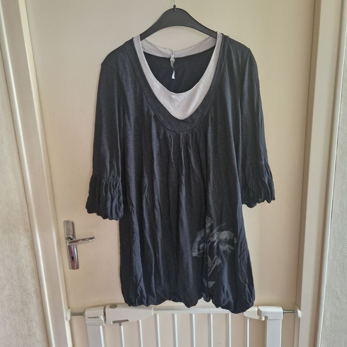 💐Négociation acceptée sur lot💐 Tunique noir Manches 3/4 Fleur grises tulipes Parfait etat