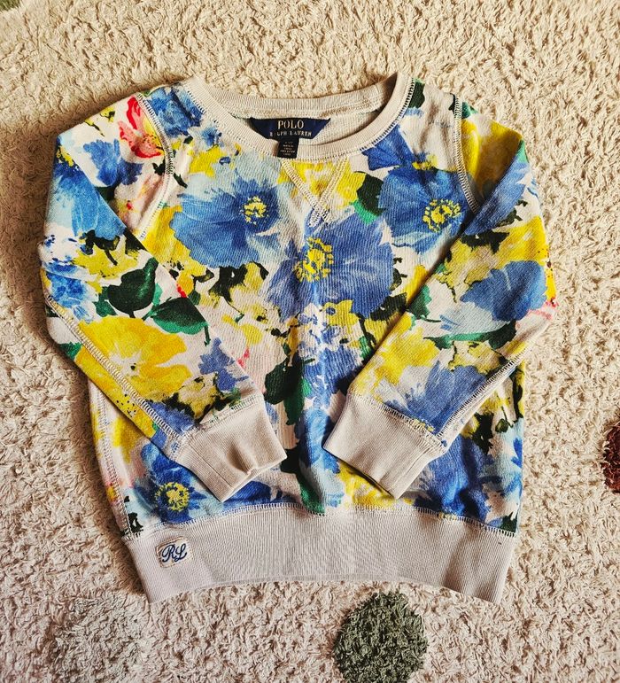 Pull sweat léger fleuri col rond Polo Ralph Lauren fille 4 ans Motif floral En très bon état général, mais petite tâche derrière la manche gauche, peu ou pas visible quand porté (voir dernière photo) 2 autres pulls Ralph Lauren disponibles dans mon dressing. D'autres vêtements fille disponibles dans mon dressing.