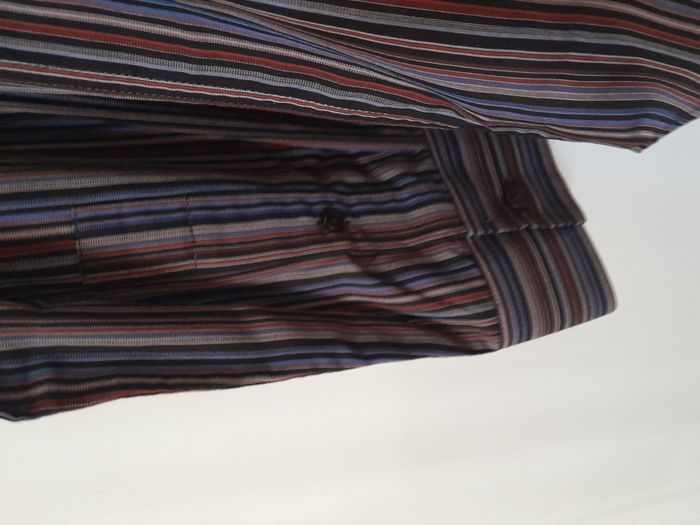Chemise à rayure, manche longue avec bouton, poche sur poitrine, plis sur omoplate, de forme arrondie sur le bas Longueur : 78cm Aiss / Aiss : 58cm Matière : 60 % Coton, 40 % Polyester Marque : Cerrer Laurent