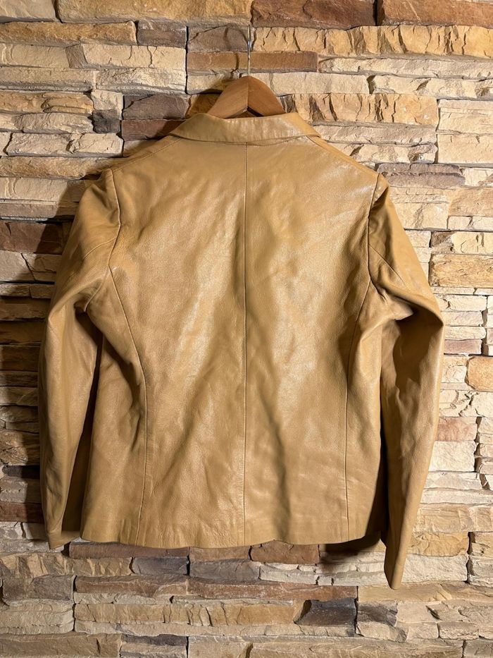 Veste en cuir orange, taille XL, en très bon état. Si vous êtes intéressé(e), merci de me contacter au préalable.