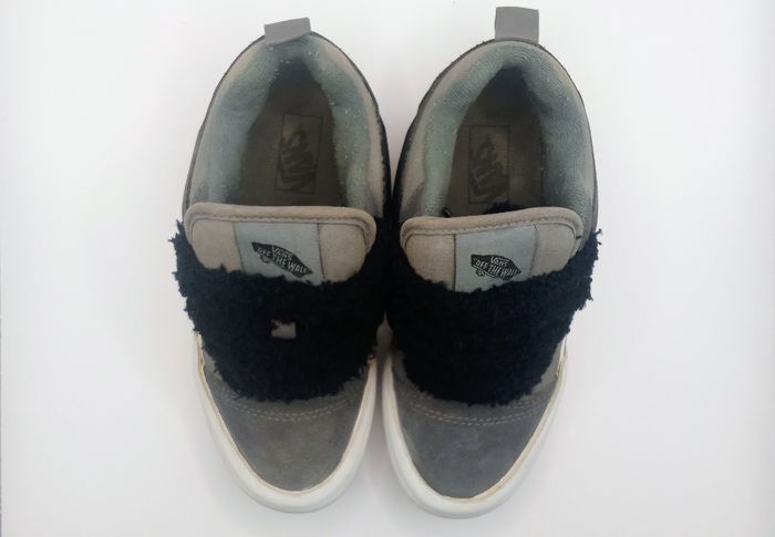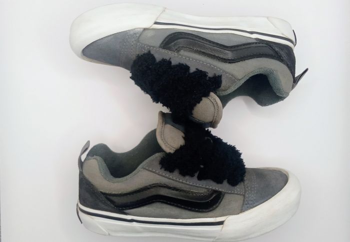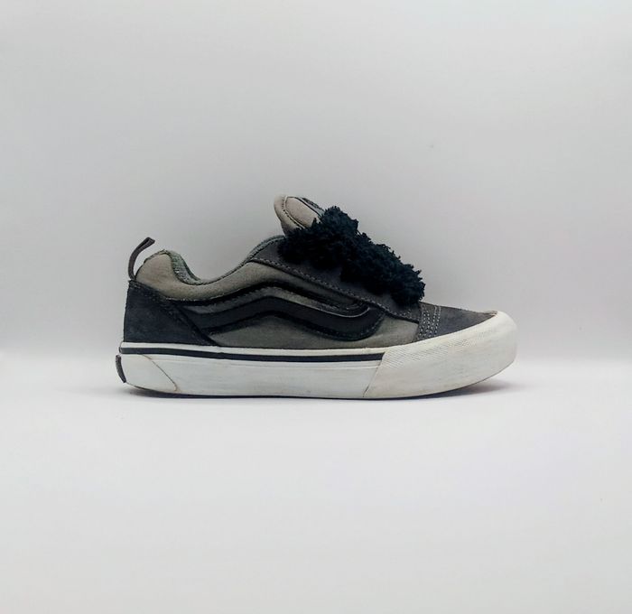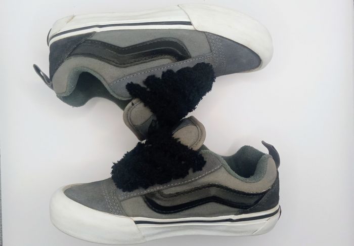 Vans Knu Skool en très bon état, légèrement utilisées mais sans défauts, à part le logo arrière légèrement effacé (voir photos). Coloris gris/noir avec lacets fluffy noirs, Modèle unisexe, convient aussi bien fille que garçon. 📦 Envoi rapide sous 24h, double box pour une protection optimale. ✅ Taille : 31.5 ✅ État : Très bon