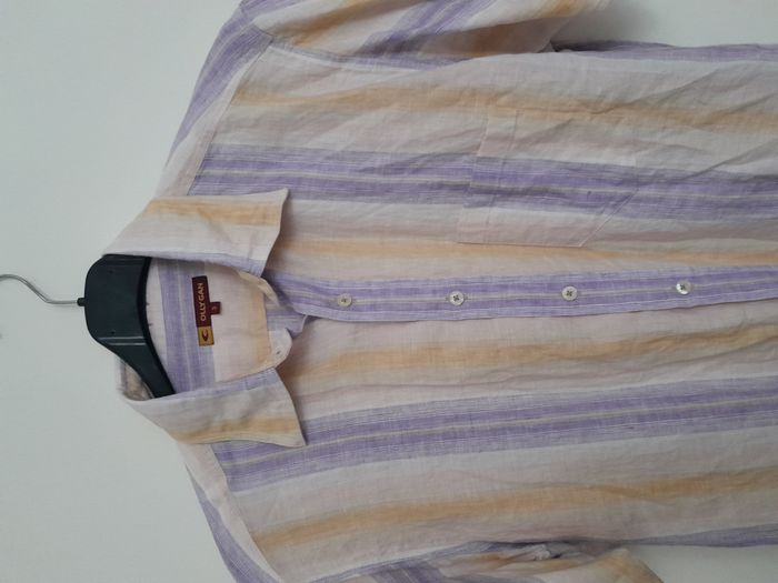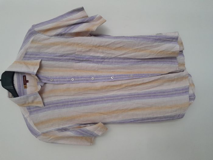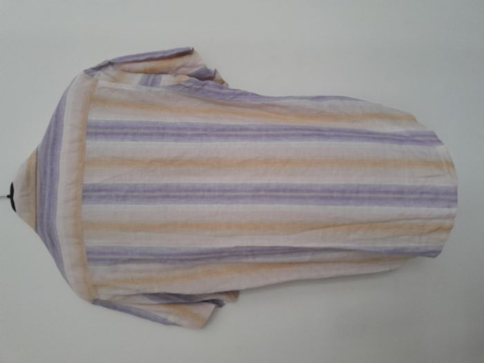 Chemise à rayure, manche courte, poche sur poitrine, de forme arrondie sur le bas Longueur : 80cm Aiss / Aiss : 56cm Matière : 100 % Lin Marque : Olly Gan