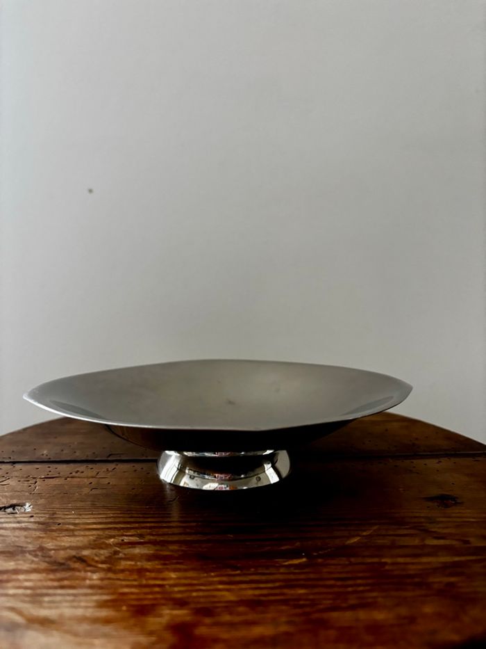 Vintage très joli vide poche art déco Sur pied En inox Marque Royal Uginium BB En bon état: n’est pas cabossée, de petites rayures et micro piquetages possibles Hauteur 4 cm Diamètre 19 cm