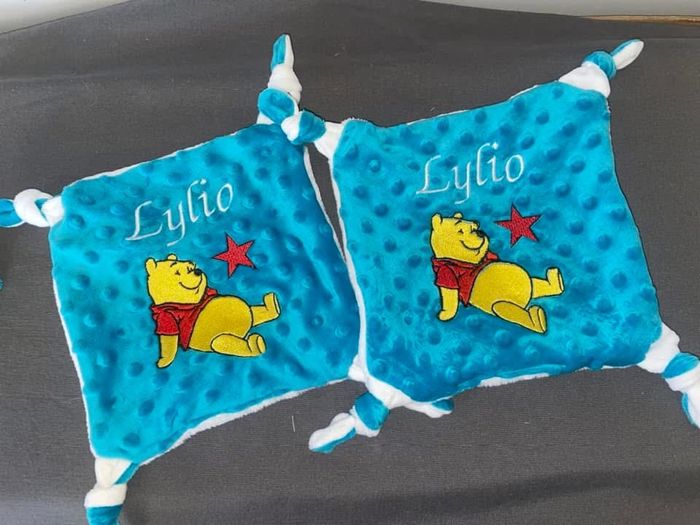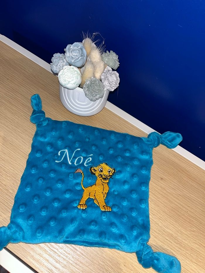 Doudou avec dessin et prénom brodé fait main