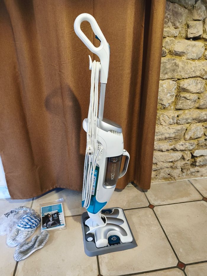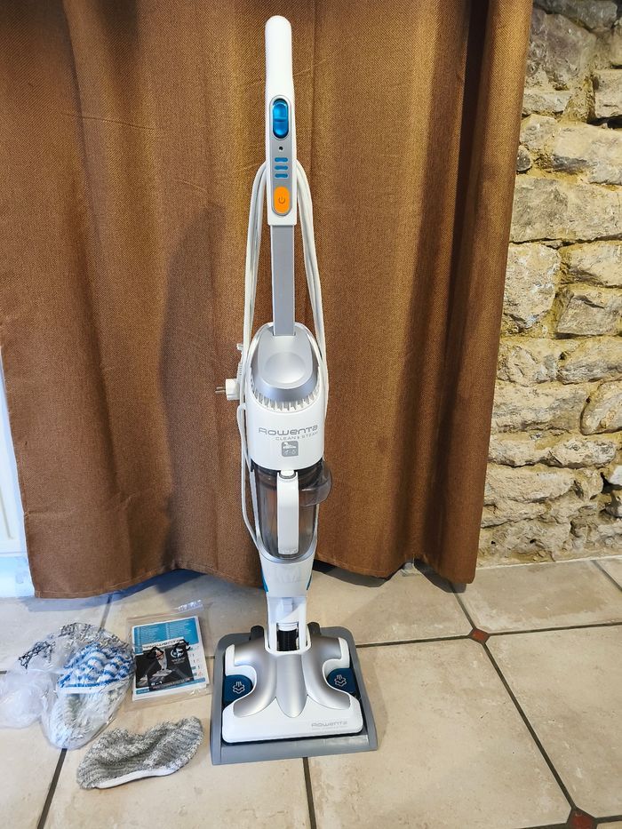 Je vends cet aspirateur balai Rowenta Clean & Steam, un modèle polyvalent et performant pour nettoyer efficacement votre maison. - Type de produit : Aspirateur balai - Marque : Rowenta - Modèle : Clean & Steam - Accessoires inclus : Brosse, suceur plat, support mural, 4 lavettes, 2 filtres... État neuf, utiliser 2 fois. N'hésitez pas à me contacter pour plus d'informations !