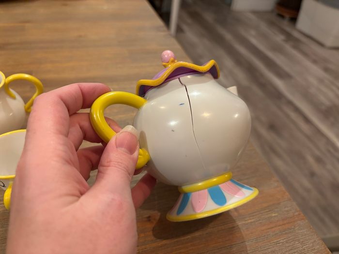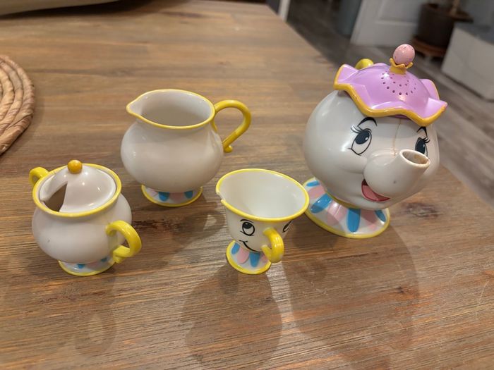 Dînette la belle et la bête de Disney, En bon état, Mme samovar est légèrement fissurée et pas de sons (voir photo 2)