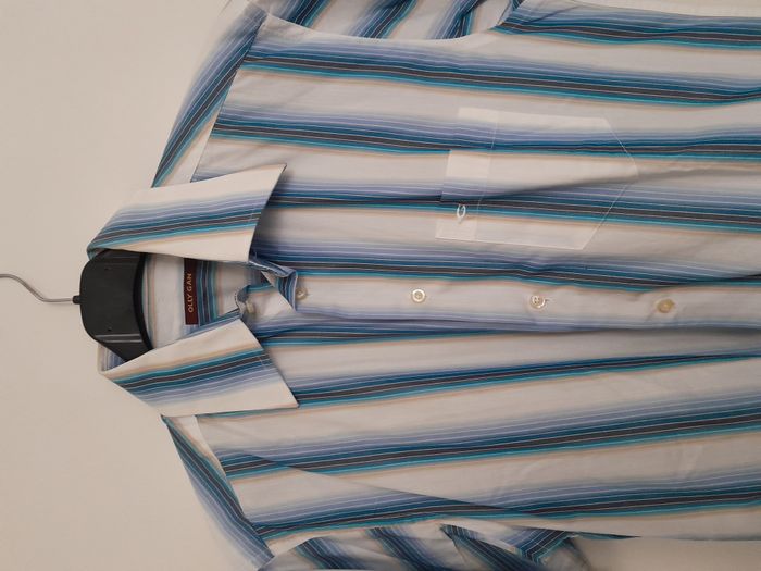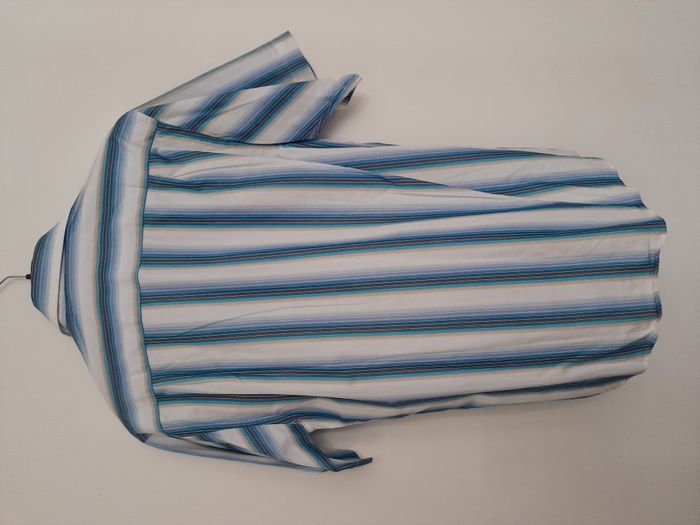 Chemise à rayure, manche courte, poche sur poitrine, de forme arrondie sur le bas Longueur : 78cm Aiss / Aiss : 54cm Matière : 100 % Coton Marque : Olly Gan