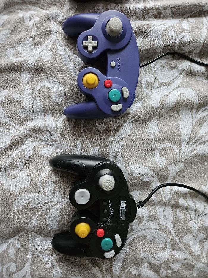Lot 3 manettes non officielles pour console Gamecube - une manette Bigben et les deux autres de matque ignorée. Les 3 manettes fonctionnents ! Bon état ( micro rayures )