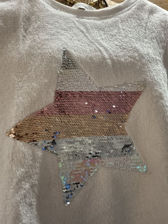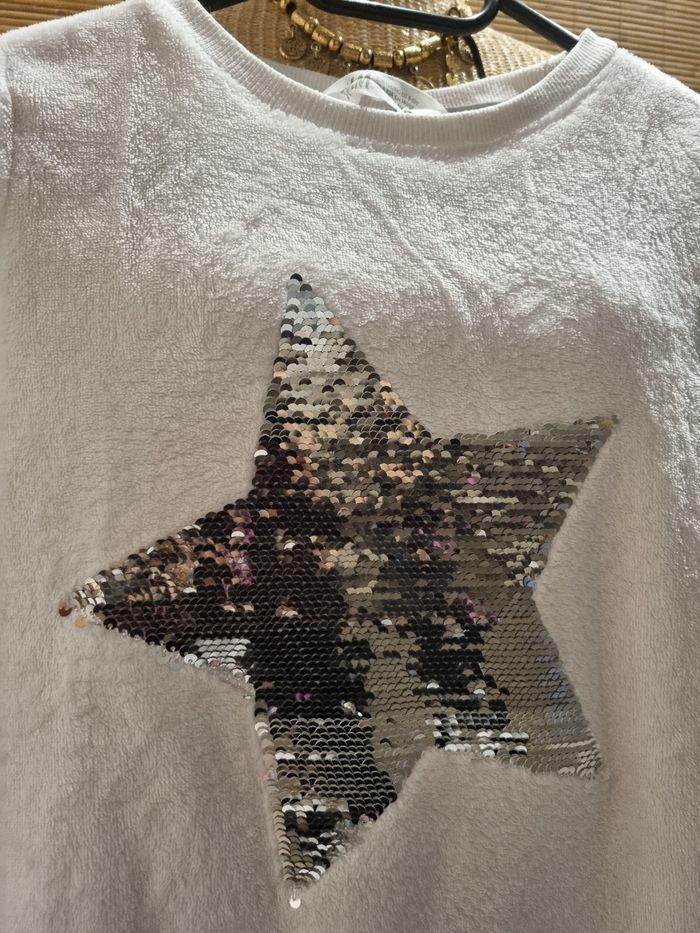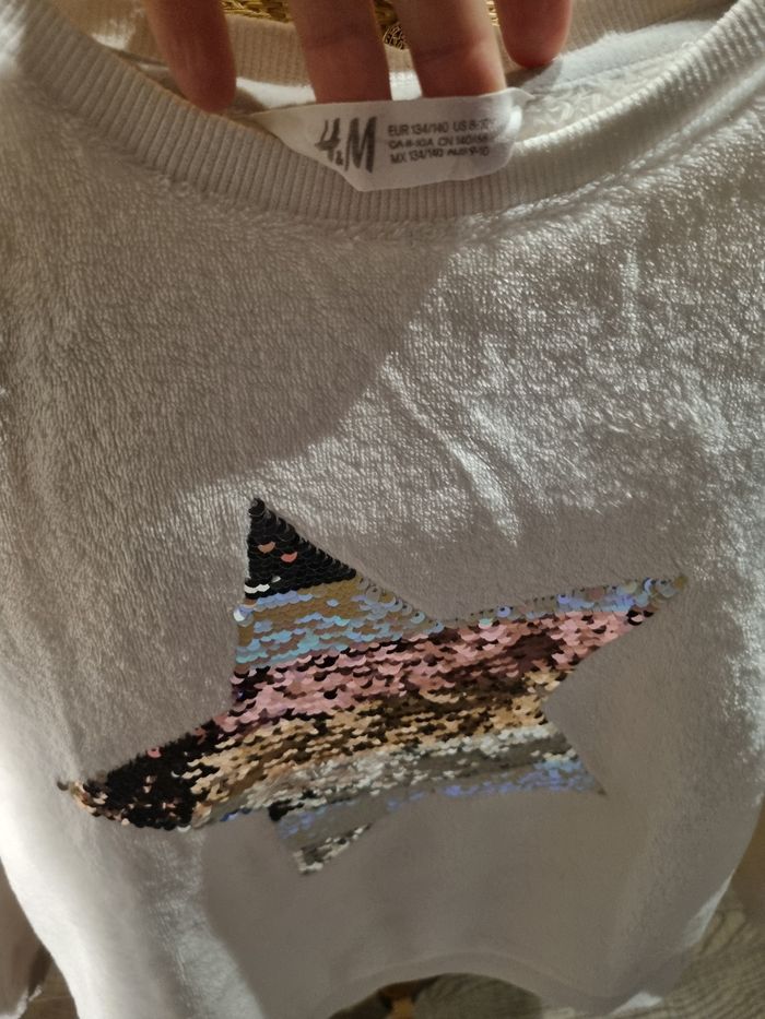 Pull blanc chaud Avec étoile en sequins (réversible) H&M 8 / 10 ans 134 / 140 cm En excellent état