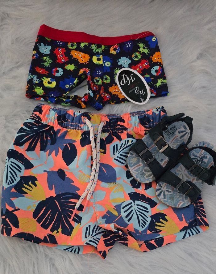 💙🤩😍lot Maillots de bain 18 mois et sandales  garçon 💙🤩😍