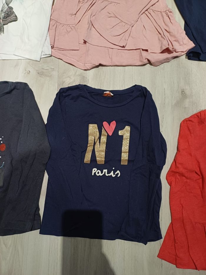 ✨ Lot de 11 t-shirts manches longues – Taille 6 ans ✨ 🆕 Majorité neufs + 1 en très bon état 👕 Détails du lot : 👚 T-shirt Miraculous gris pailleté rouge – neuf (lavé 1x) 🌸 T-shirt Tissaia rose manches évasées – neuf (lavé 1x) 🐱 T-shirt bleu marine chat à sequins – neuf (lavé 1x) ✨ T-shirt Tissaia beige visage fille pailleté – neuf (lavé 1x) ❤️ T-shirt Kiabi rouge à volant bas – peut-être porté 1x (état proche neuf) 🌼 T-shirt C&A bleu à fleurs – neuf (lavé 1x) 🍋 T-shirt Tissaia crème “limonade” pailleté – neuf (lavé 1x) 🗼 T-shirt Tape à l’Œil bleu marine “Paris” – neuf (lavé 1x, peut-être porté 1x) ⭐ T-shirt col montant noir paillettes argent – neuf (lavé 1x) 🚀 T-shirt Kiabi bleu marine “Houston” – neuf (lavé 1x) 🎈 T-shirt rose motif ballon – porté 3x max, TBE 📦 Lot dépareillable avec un autre lot dispo sur ma page 🔎 #laul57fille6ans 🏡 Maison non fumeur 🚭 | sans animaux 🐾 | première main