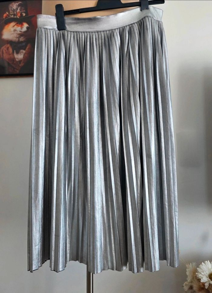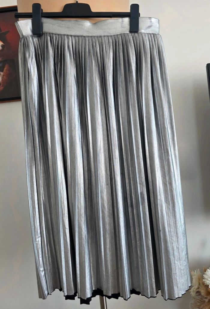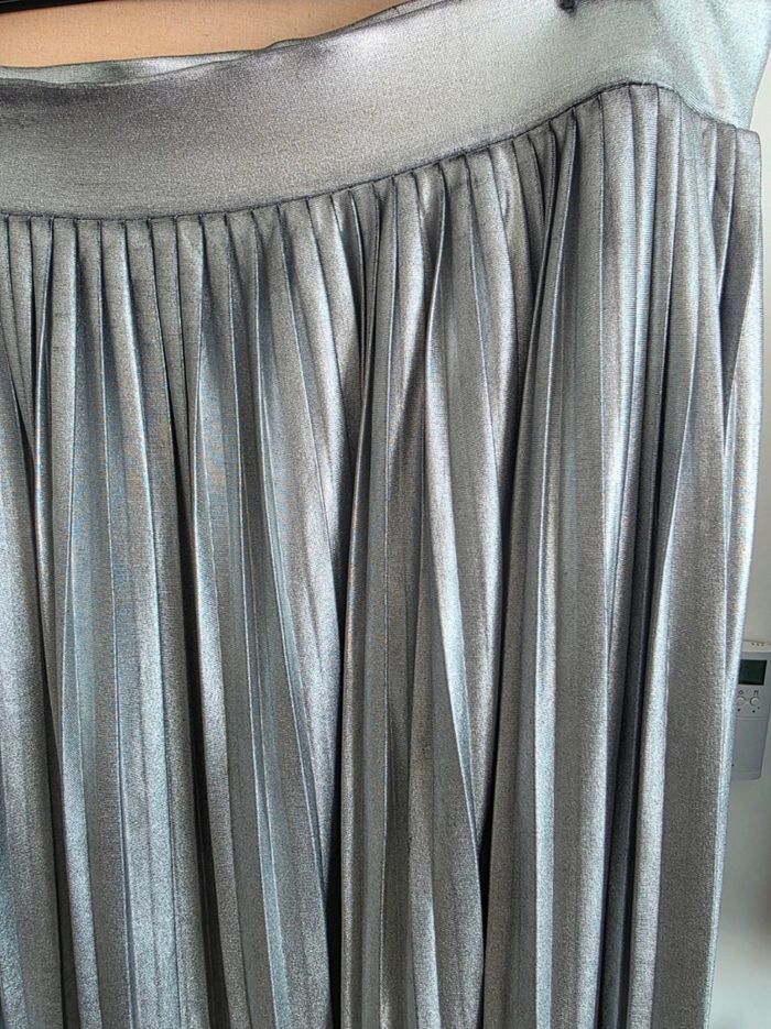 ❇️ Très jolie jupe gris brillant Taille 44 Le tissus peut présenter quelques effets imperfections "grisés ou noircis" ; ce ne sont pas des tâches mais l'aspect "métallique " de celui-ci