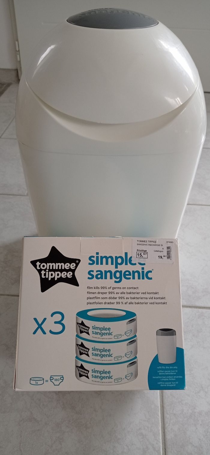 Bonjour, je vends une poubelle a couches avec 3 recharges neuves de la marque tommee tippe. La poubelle est en excellent état. 10€ pour l'ensemble