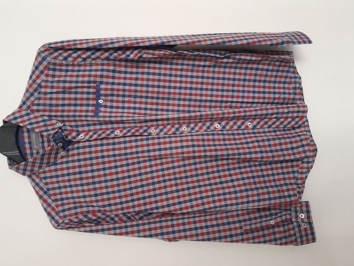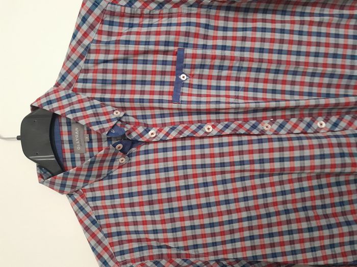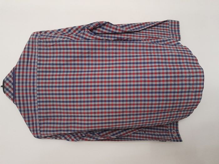 Chemise à carreaux, manche longue avec bouton ajustable sur 2 niveaux, bouton sur col, poche sur poitrine avec bouton, de forme arrondie sur le bas Longueur : 75cm Aiss / Aiss : 54cm Matière : 100 % Coton Marque : Olly Gan