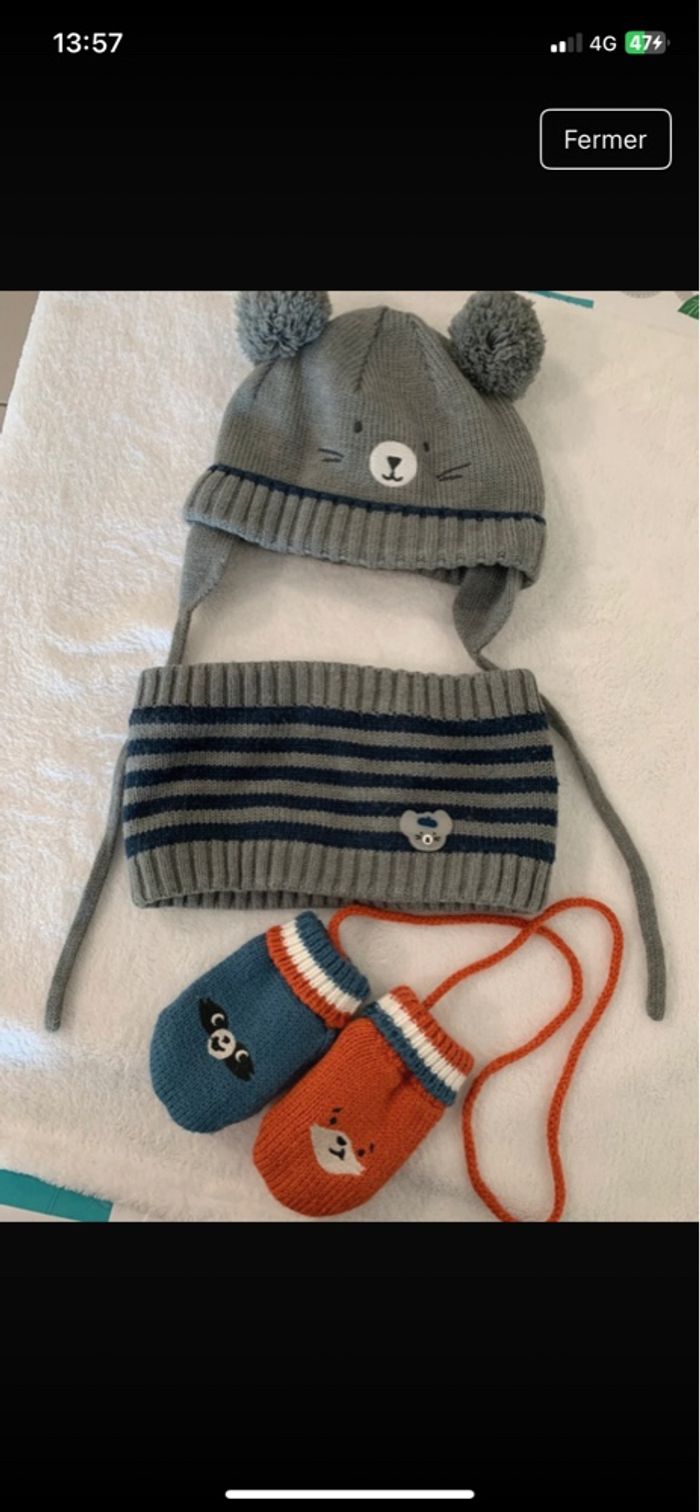 Bonnet, tour de cou, moufle