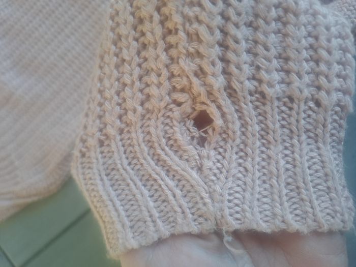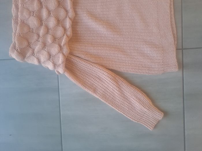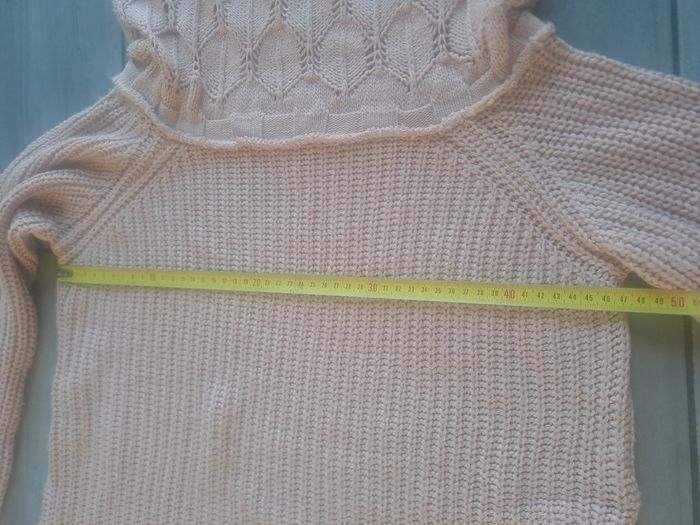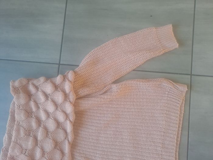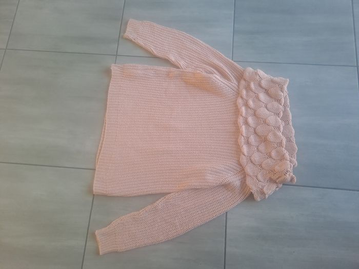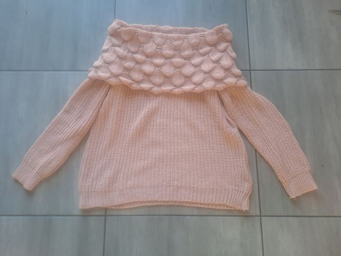 Pull Manches longues Avec un grand col original ⚠️ un petit trou sur la Manches au niveau du poignet Couleur rose clair Taille S (36) pouvant convenir à plus grand , mesure aisselle à aisselle 47cm Marque NEWCO