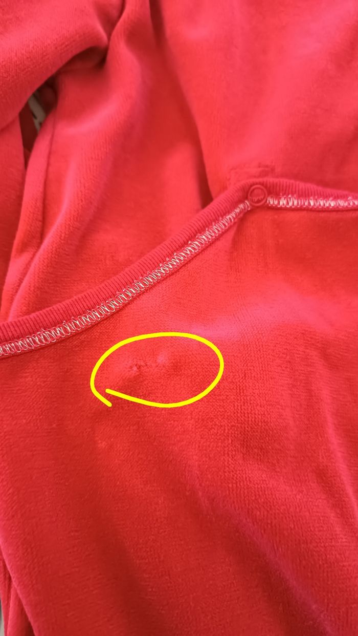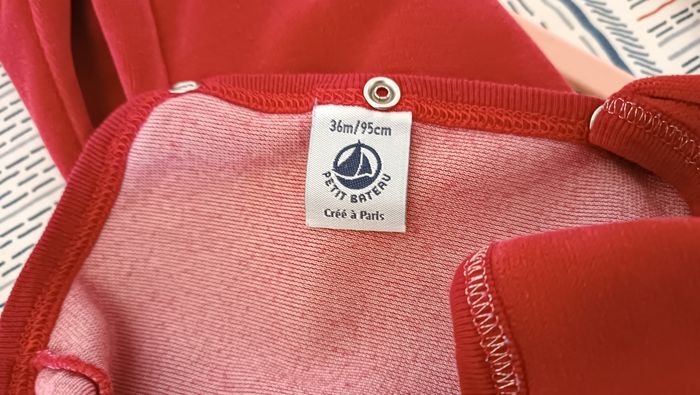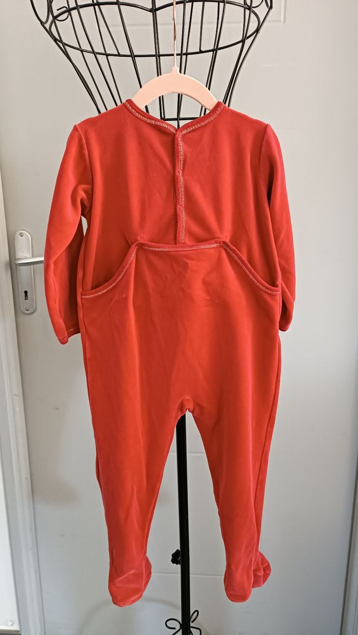 Grenouillère en velours rouge, ouverture à l arrière, taille 36 mois, de marque Petit Bateau, bon état. Petit accroc recousu (photo 3) Possibilité de faire des lots
