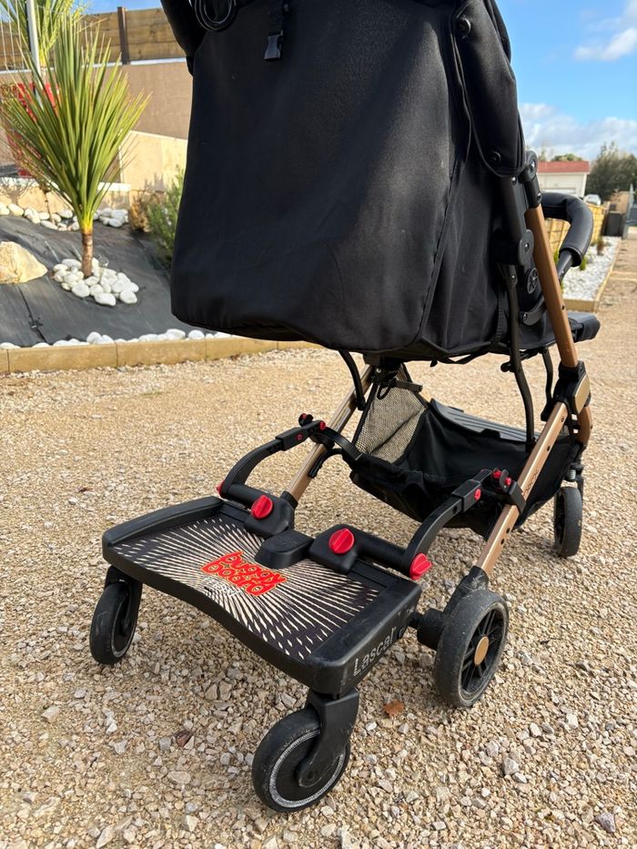 Le Buggy Board Maxi + permet à votre enfant ainé de se reposer en toute sécurité quand il n’a plus envie de macher ! Attaché à la poussette bébé pourra s’assoir sur la selle repliable ou se tenir debout ! Caractéristiques : Buggy Board Maxi +. Marche pied. Permet de transporter l’enfant aîné fatigué en sécurité. Debout ou assis sur la selle repliable. S’attache à la poussette. Suspensions. Surface antidérapante. Jusqu’à 30 kg. Fixation universelle. Réflecteurs latéraux. Spécificités : Utilisable de 3 à 5 ans. Matière : polypropylène. Dimensions : 20,3 x 38,1 x 2,7 cm.