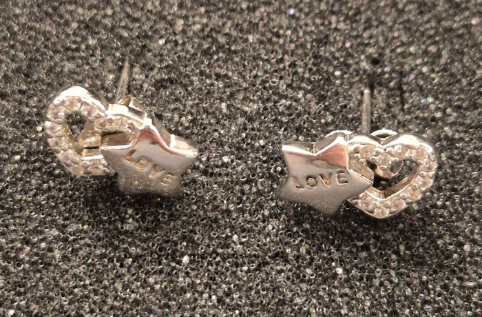 paire de boucles d'oreilles cœur et étoile avec inscription love en argent 925 et zircon type clous jamais porté #bouclesdoreilles #bouclesdoreillesargent #bouclesdoreilleargent924 #argent925