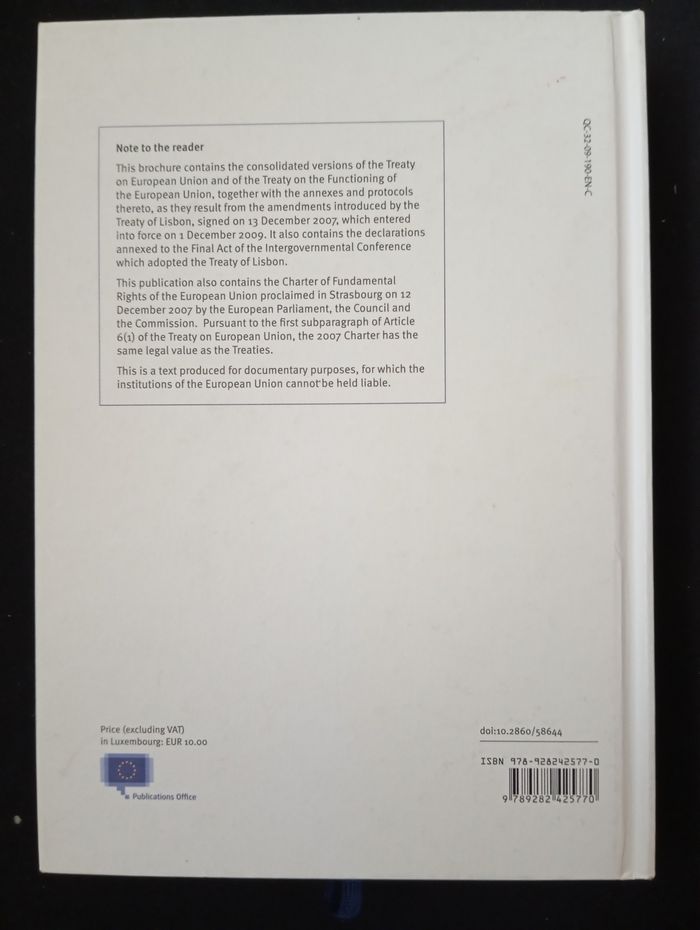 Je vends ce livre intitulé "Consolidated Treaties - Charter of Fundamental Rights" de l'Union européenne, en anglais. - Titre : European Union - Langue : Anglais - Catégorie : Autre - État : Très bon état Très bon état N'hésitez pas à me contacter pour plus d'informations !