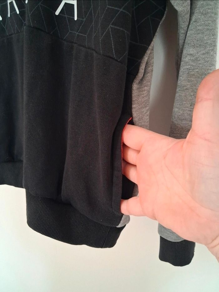 Indémodable et confortable ! Ce sweat à capuche Kappa est idéal pour un look décontracté ou sportif. ​Design : Look bicolore gris chiné et noir ​Pratique : Col à demi-zip très facile à enfiler et deuc poches ​État : juste une petite tache sur l'avant bras voir photo sinon tres bon etat ​Taille : 10 ans 140 cm ​#Kappa #Sportswear #SweatACapuche #Hoodie #Streetwear #ModeAdo #KappaVintage #VetementSport #GrisEtNoir