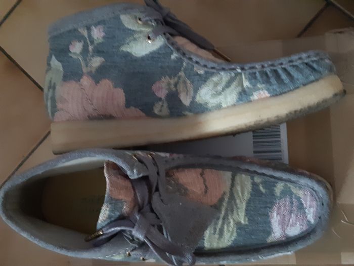 superbes clarck's wallabee modele blue floral excellent état POINTURE 39 SIZE 6 UK ET SIZE 7,5 US femme vendu dans sa boite d'origine