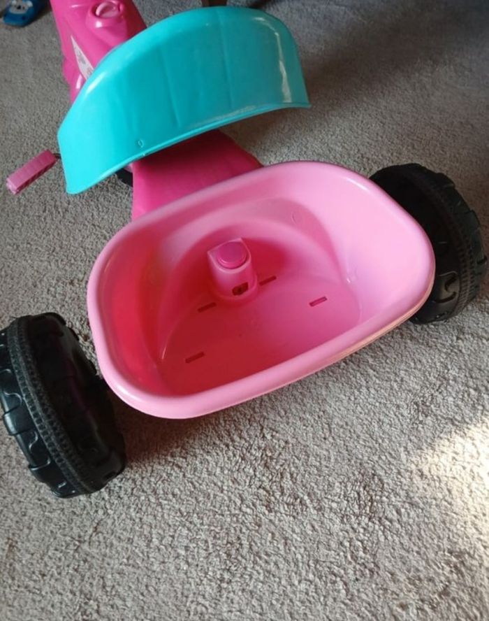 Tres bon etat général a ete utilisé peu de fois car draisienne puis vélo. Il manqje un plastique dessous (cf avant derniere photo) mais qui n'altère en rien son utilisation.