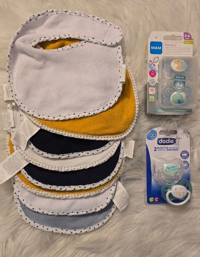 🥰😍Lot bavoirs KIABI et sucettes MAM/DODDIE 🥰😍