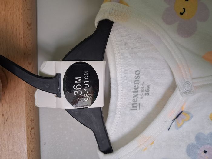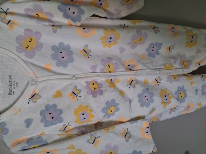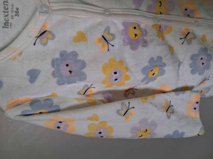 #alexamaya_36Mois Pyjama : * 1 pièce * Ouverture boutons pression sur le devant jusqu'en bas d'une jambe * Motifs : Fleurs & papillons Neuf avec étiquette Marque : Inextenso Taille : 36 Mois - 96/101 cm