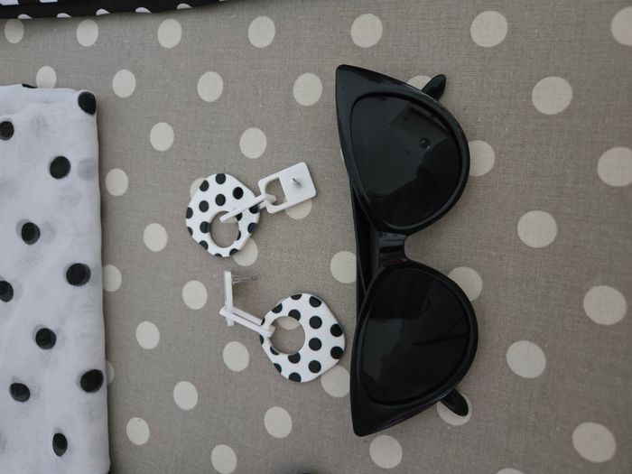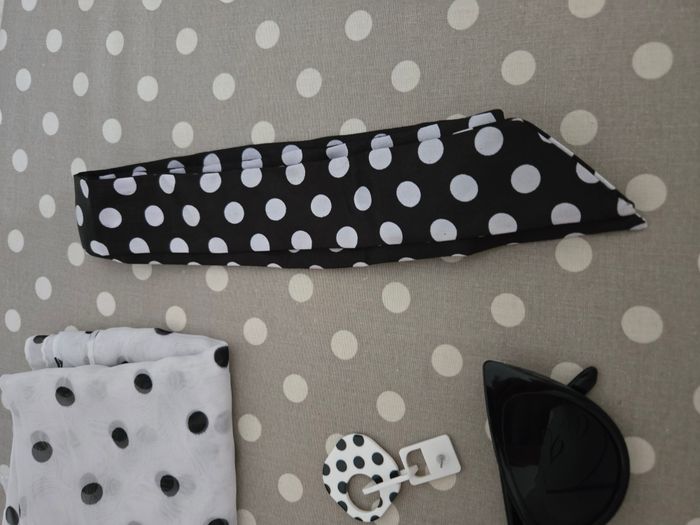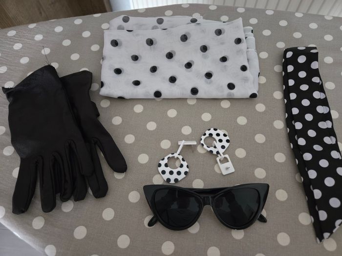 lot accessoires pour femme style années 50 comprend : lunettes noires, bandeau, foulard et paire de boucles d'oreilles