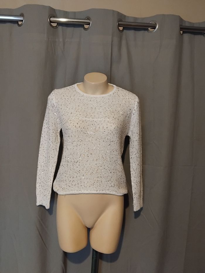 Magnifique pull taille xs blanc doré