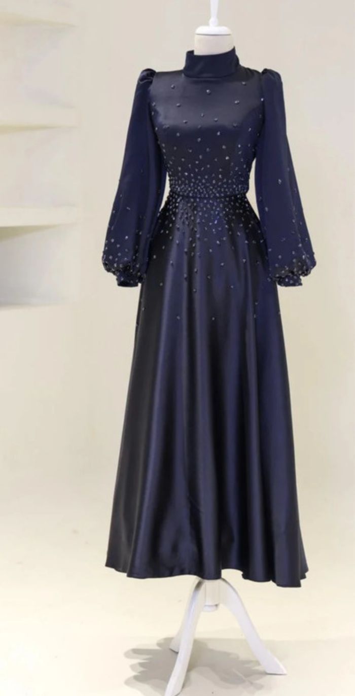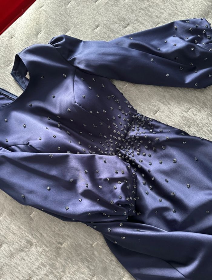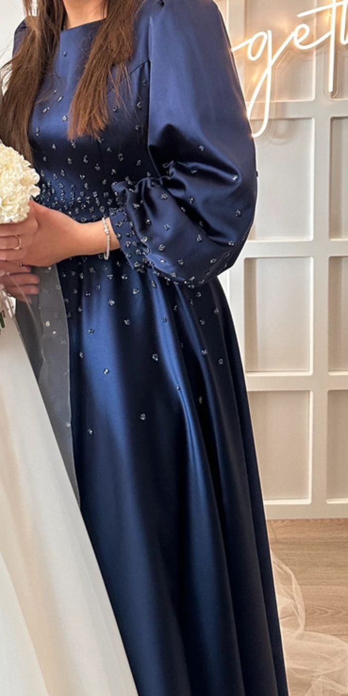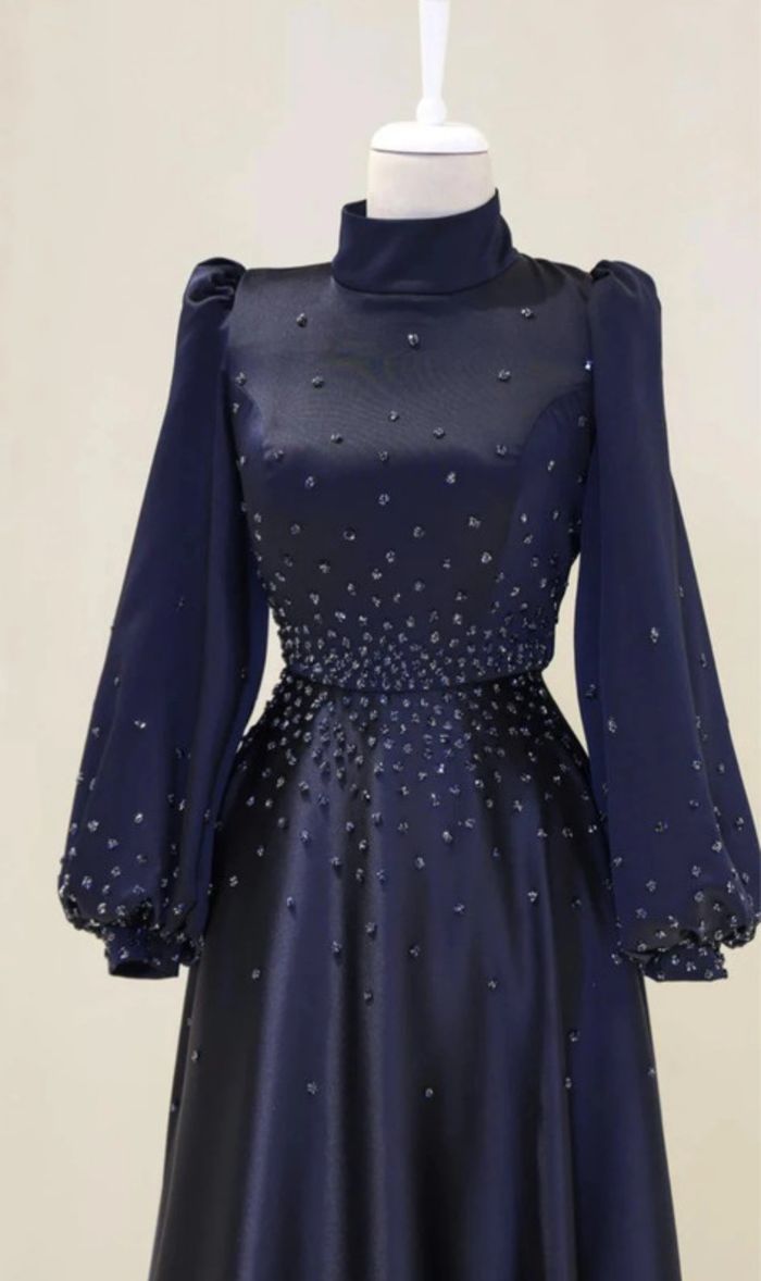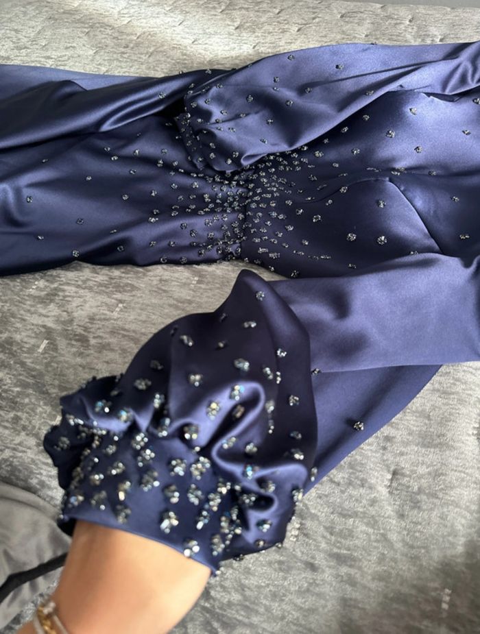 Robe bleu longueur 140 cm à strass 0 défauts Taille 40 État nickel portée 1 fois Le col montant a été retiré par une couturière Robe de Turquie qui m’a coûté 180€
