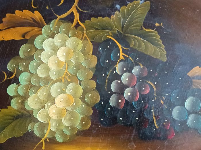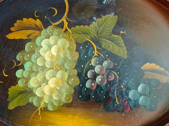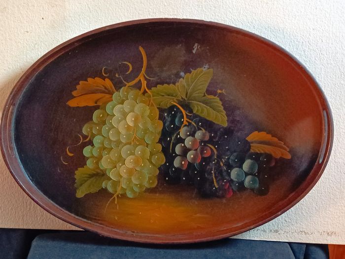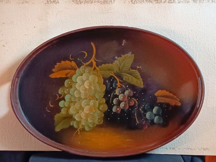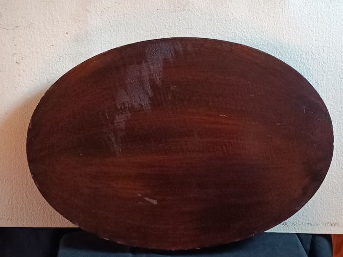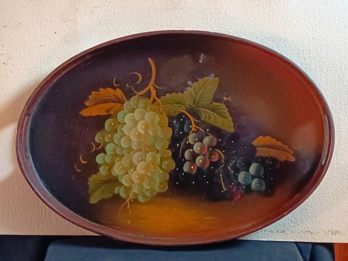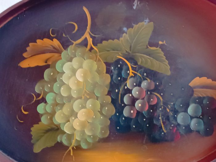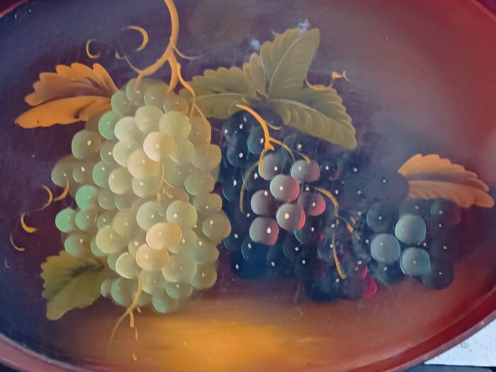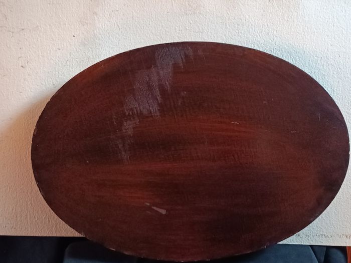 Plateau oval vintage en bois peint 47 cm x 33 cm x 3cm et 4,5 cm au niveau des anses qques marques cf photos