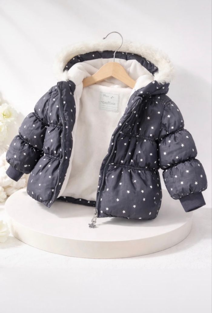 Superbe doudoune pour bébé/enfant de la marque Mes Petits Cailloux Intérieur entièrement doublé en polaire blanche toute douce.