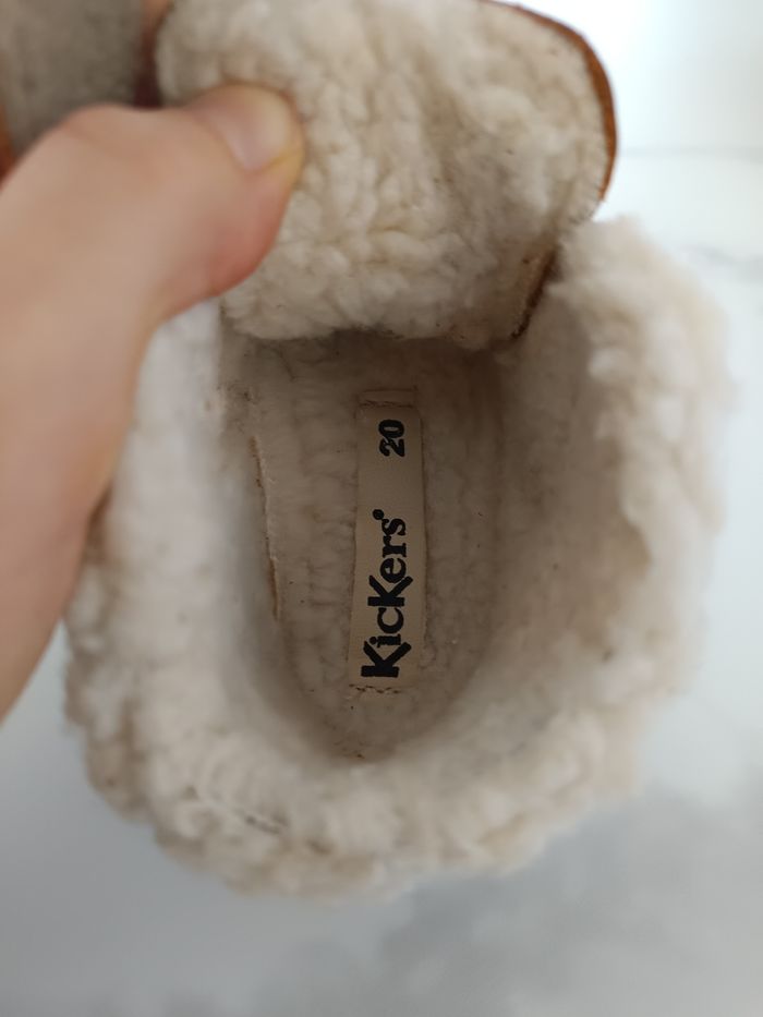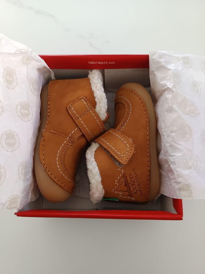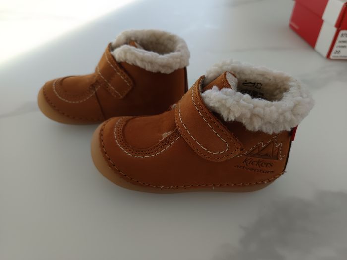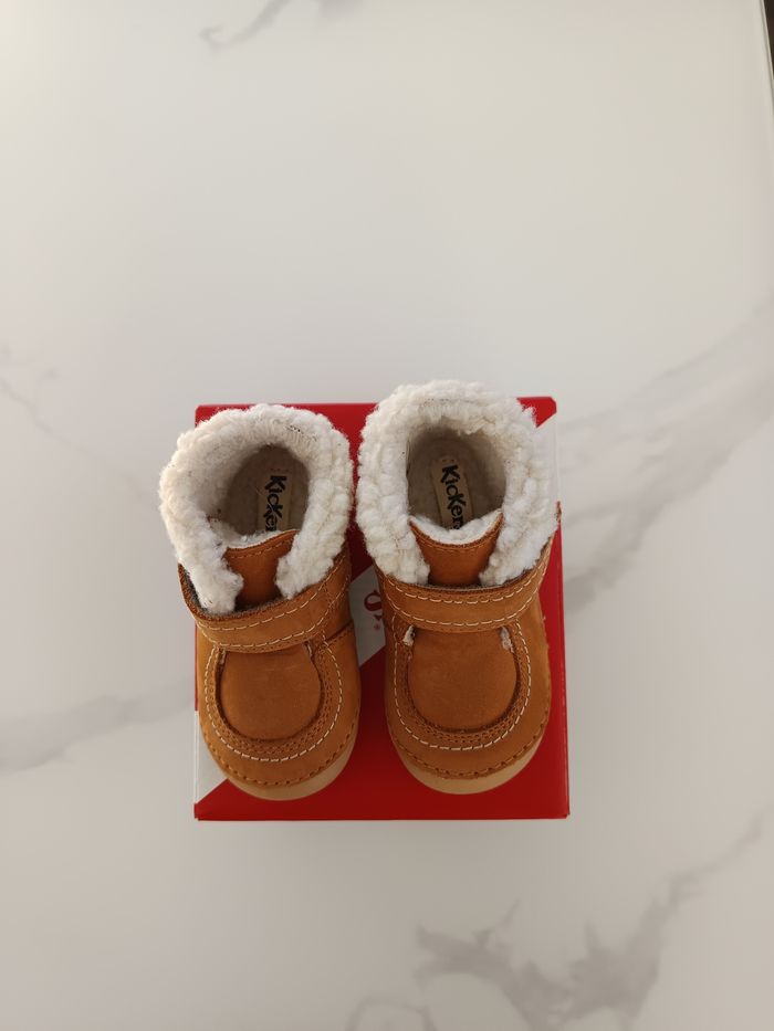 Kickers Somoons fourrés pointure 20 neuves jamais portés. Couleur camel. Vous pouvez jeter un oeil dans mon dressing si vous le souhaitez ; j'ai d'autres articles bébé en vente et les réductions sont activées.