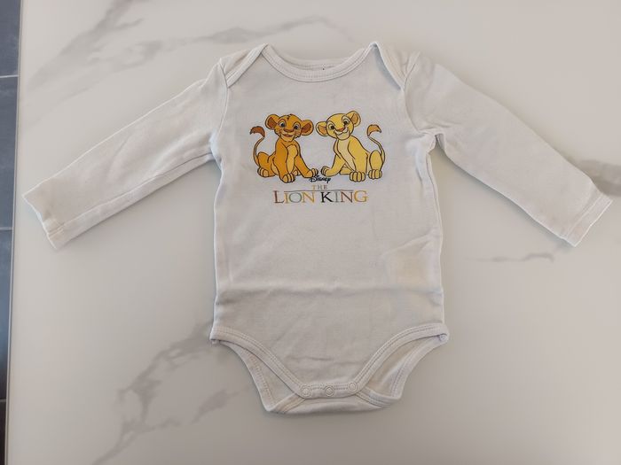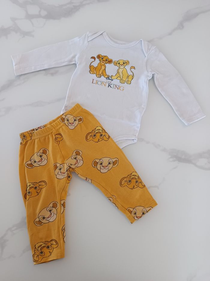 Ensemble le roi lion composé d'un body manches longues et d'un legging de marque Disney baby en très bon état. Taille 12 mois. Prix du lot : 3€. Vous pouvez jeter un oeil dans mon dressing si vous le souhaitez ; j'ai d'autres vêtements bébé en vente et les réductions sont activées.
