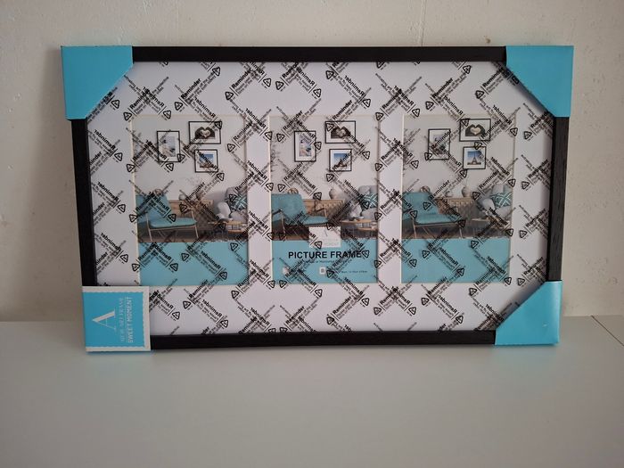 Je vends ce cadre photo pour 3 photos 10x15 cm, neuf et de style moderne. - Type de produit : Cadre photo - Matière : Bois - Couleur : Noir - Dimensions : 3 emplacements 10x15 cm - État : Neuf Neuf, jamais utilisé. N'hésitez pas à me contacter pour plus d'informations ou de photos. #jessdestock_autre