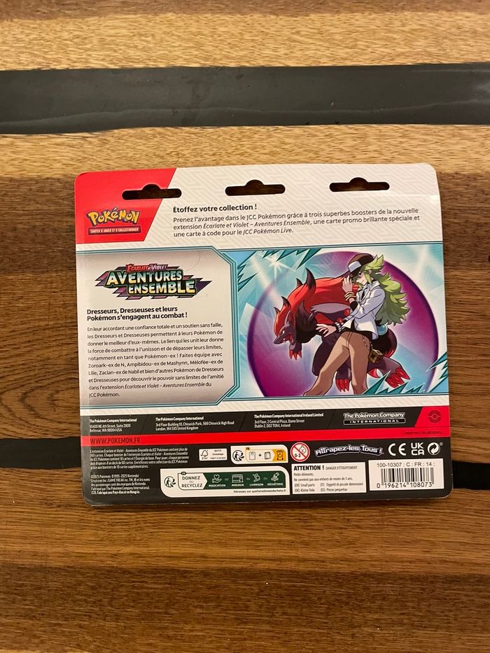 Neuf, sous blister d'origine (Scellé). Ce tripack de l'extension Aventures Ensemble (EV9) est idéal pour agrandir votre collection avec une carte exclusive et plusieurs boosters ! Contenu du pack : 3 boosters du JCC Pokémon : Aventures Ensemble (EV9). 1 carte promo brillante de Baggaid. 1 jeton (coin) Pokémon à collectionner. 1 carte à code pour le JCC Pokémon Live. Envoi : Expédition très rapide. Le pack sera ultra-protégé (carton rigide et papier bulle) pour éviter que le blister ne soit plié ou que la carte promo ne s'abîme pendant le transport. #pokemon #tripack #baggaid #scrafty #aventuresensemble #ev9 #ecarlateetviolet #cartespokemon #neuf #scelle #collection #jccpokemon #cadeau