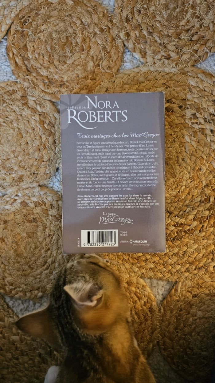 📘 Nora Roberts – Trois mariages chez les MacGregor Roman de Nora Roberts 📖 Trois mariages chez les MacGregor ❤️ Romance – saga familiale 📌 État correct à bon (trace de pli sur la couverture) 💶 Prix : 2 € 👉 Articles à 1 € disponibles sur mon profil 👉 Réductions pour achats groupés / lots romances 👉 Envoi soigné ou remise en main propre selon plateforme