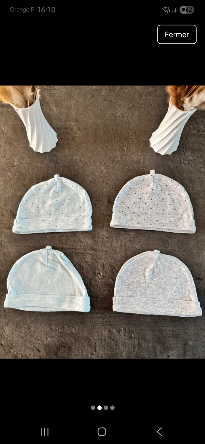 Bonnets bébé garçon (x4) 1 bleu clair et 1 gris clair uni 1 bleu clair et 1 gris clair avec des étoiles
