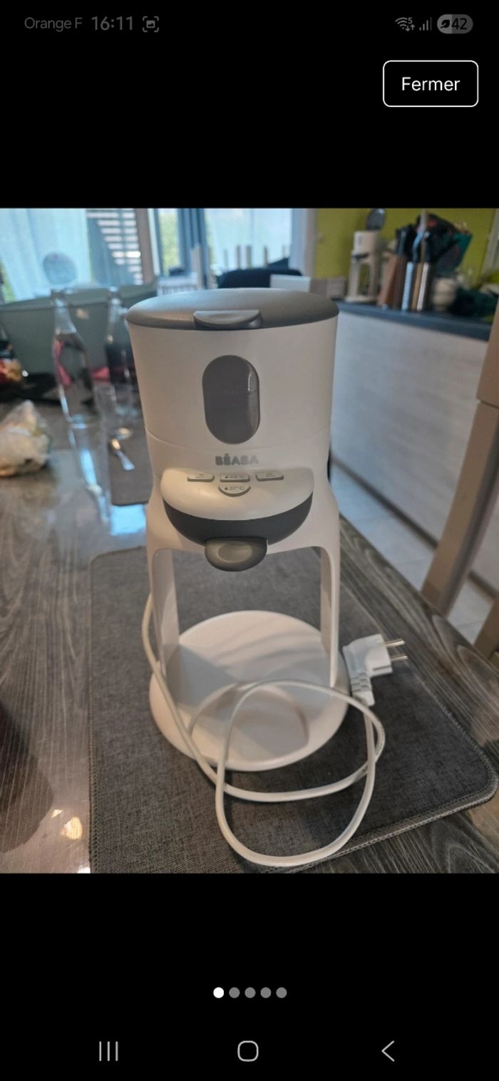 Chauffe biberon avec contrôle de la température à 37°C en 30 secondes, il permets de chauffer les petits pots en fonction bain marie. Excellent état, vendue sans la boîte d'origine.