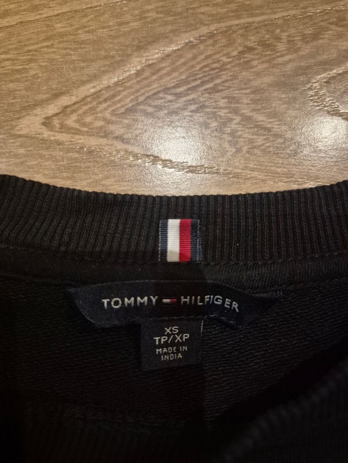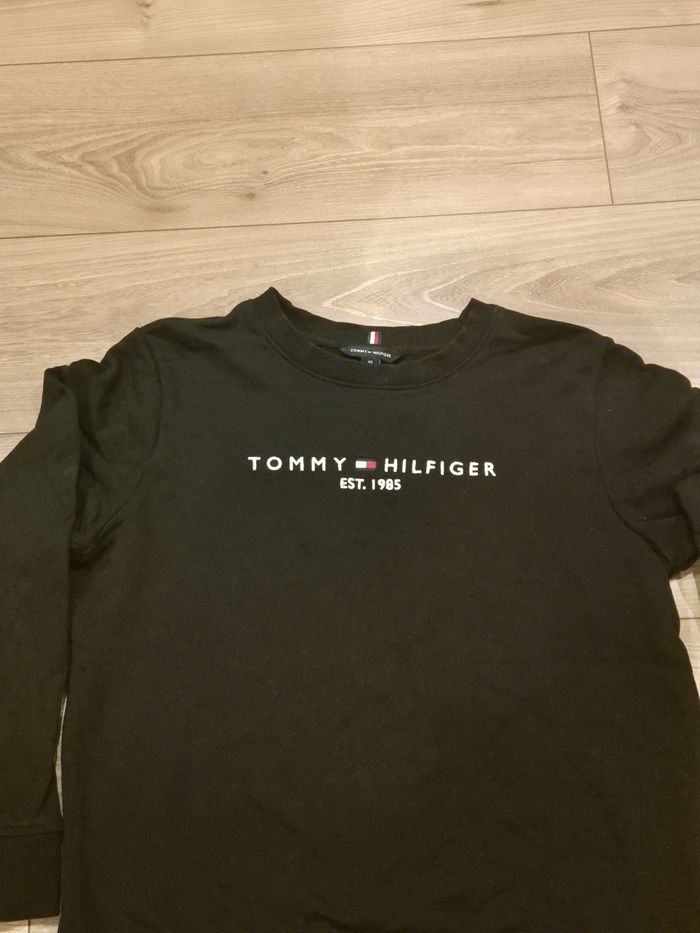Pull de la marque Tommy Hilfiger tout noir sans tache ni délavé malgrès la photo. En taille XS mais convient plutot a un S.