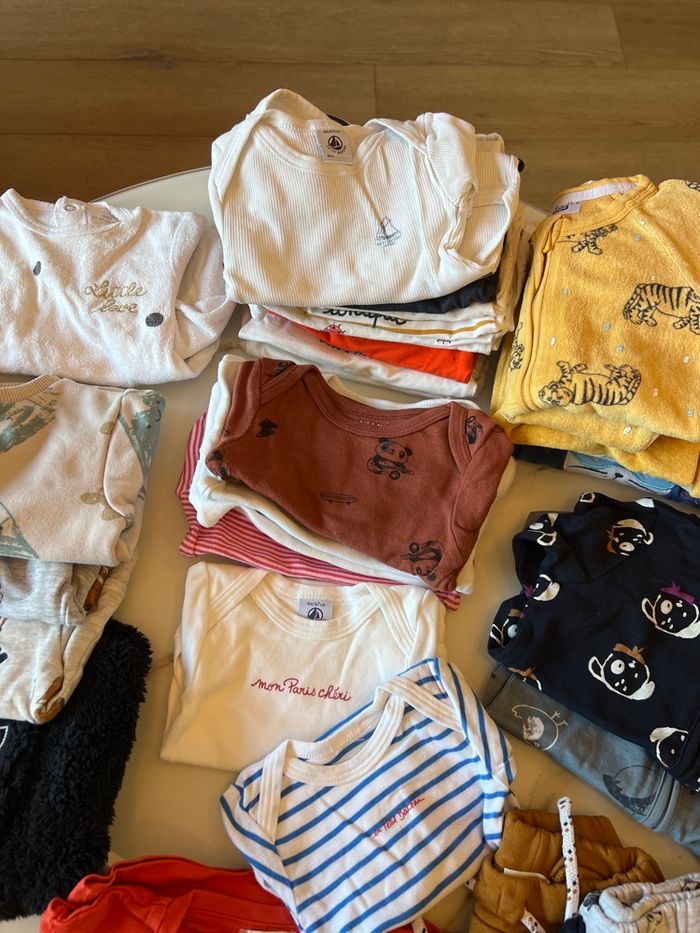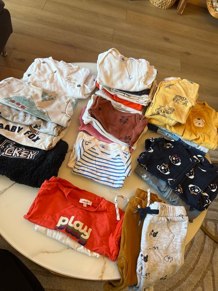 Lot en très bon état pour la plus grosse partie des pièces. Lot qui comprend : 5 pyjamas hiver 2 pyjamas fins 4 pulls 14 bodies manches longues 2 bodies manches courtes petit bateau 2 t-shirt manches longues 2 pantalons Marques: tape à l’œil, H&M, Kiabi, petit bateau, DIM