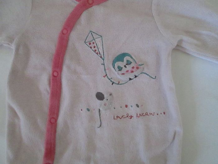 Vends pyjama rose motif cerf volant. Taille 1 mois. Excellent état. Pour plus de choix, allez consulter mes autres annonces.